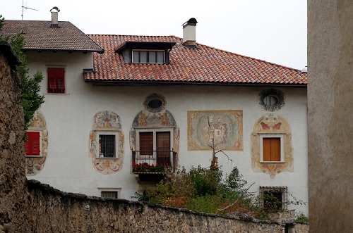 Parte della facciata dell'edificio storico "Casa Martini-Thun" a Revò, in Val di Non.