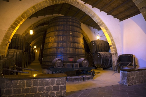Cantina toscana con orci di terracotta