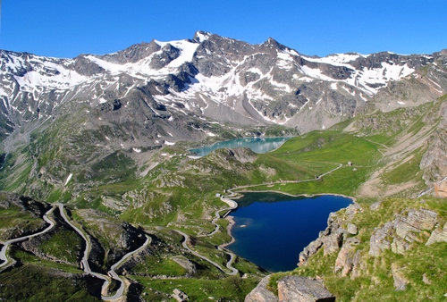 Tag: strada, lago, neve, montagna, montagne, panorama, laghi, curve, rocce, cielo.