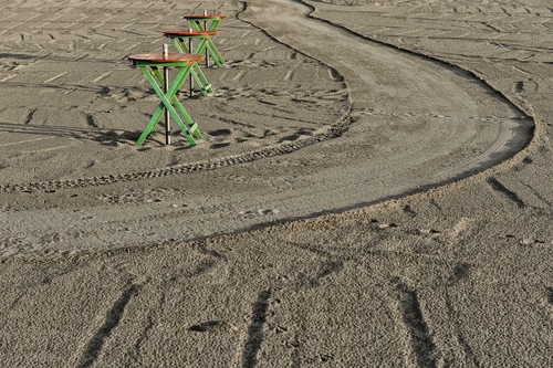 Tag: sabbia, verde, tavolini, spiaggia, impronte, curve, tavoli.